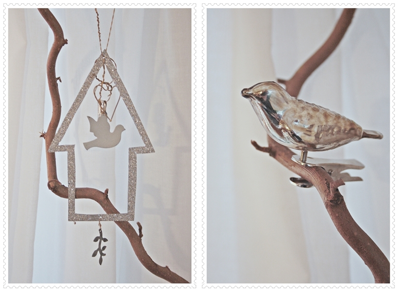 De fina fåglarna har jag också,,,fiffigt att sätta dem i en gren.